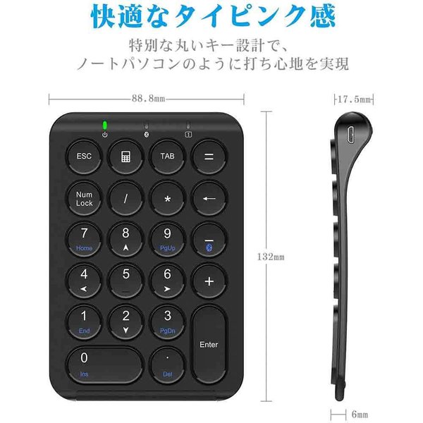 即納 無線 ワイヤレス キーボード Bluetooth テンキー パンタグラフ 充電式 ブラック ワイヤレスキーボード デスクトップパソコン/ノートパソコン